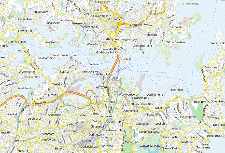 Mit diesem online The Rocks-Stadtplan entdecken Sie die Straßen und Wege in Australien und besuchen Sie wie zahlreiche andere Australien-Touristen Kartenausschnitte nahe.